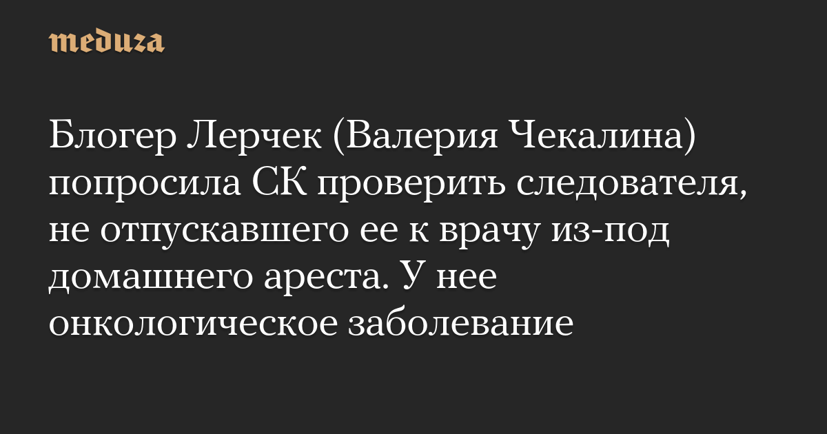 Blogger Lerchek (Valeria Chekalina) asked the Investigative Committee to check the investigator who did not allow her to meet the doctor due to house arrest. She has cancer