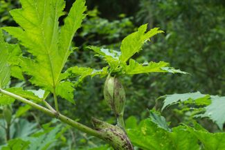 The central stem of the hogweed is always smooth, and it and the leaf cuttings have dark red veins.