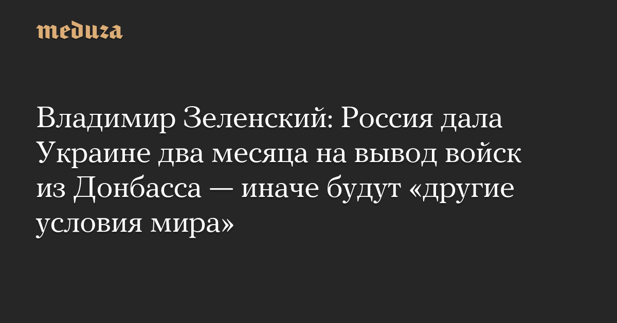 As part of the negotiations, Russia is demanding that Ukraine withdraw its forces from the Donetsk region within two months, and threatens to change its demands if this does not happen. This was stated by Ukrainian President Vladimir Zelensky.