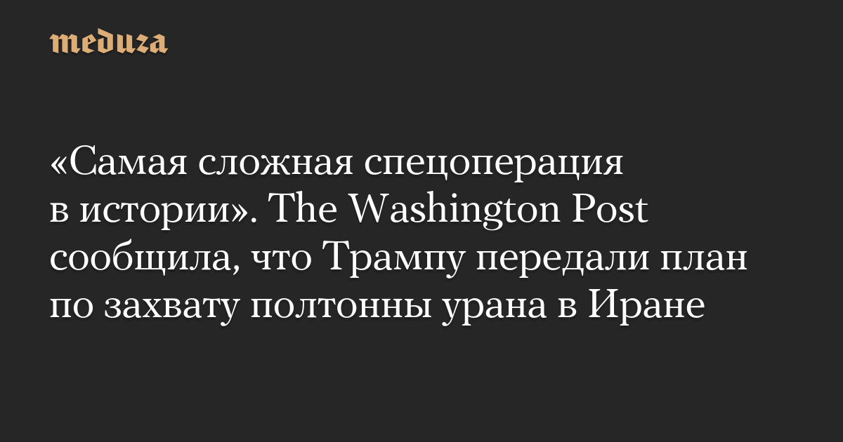 The Washington Post reported on April 1, citing sources, that the military had handed US President Donald Trump a plan to confiscate some highly enriched uranium in Iran.