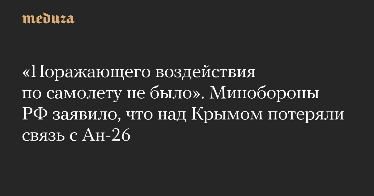 The Russian Defense Ministry reported that at approximately 18:00 Moscow time on March 31, contact was lost with the An-26 military transport aircraft, which was conducting a scheduled flight over the Crimean Peninsula.