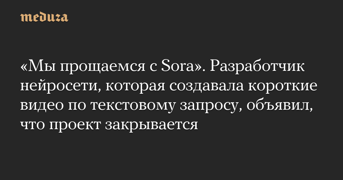 The developers of the Sora neural network, which produced short videos based on textual descriptions, said goodbye to her.
